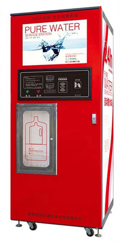小區自動售水站是一種集制水與售水為一體的純水機型,以使用高科技為廣大居民提供國際標準的飲用水為設計初衷,已風行歐美、日韓多年。它占地面積僅1平方米,一般放置在社區、便利店、市場、單位、學校等地,小區全自動售水機充分發揮了這些場所廉價租金、穩定消費群、密切人脈關系等優勢,有利于長久經營。目前已經由投幣型自動售水機發展成投幣IC卡型自動售水機。